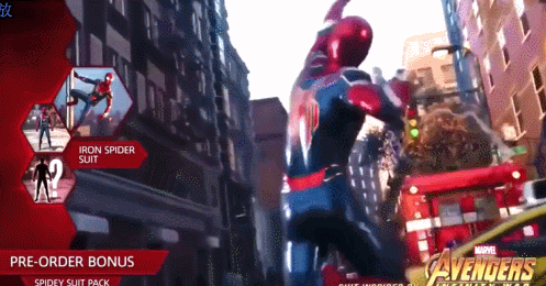 泄露的《漫威蜘蛛侠》服装演示片段中,穿着钢铁战衣的蜘蛛侠在纽约城中荡来荡去,或许是材质的缘故,英雄的屁股在阳光下真是非常闪耀。