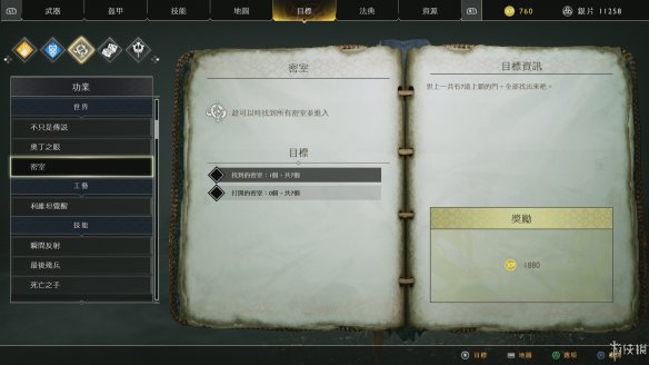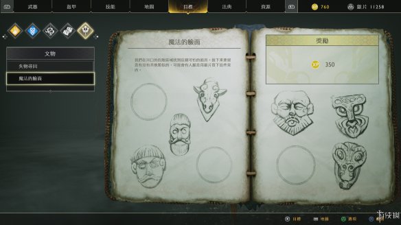 除了解谜外游戏中还有大量的收集、支线要素,例如[差事]、[功业]、[藏宝图]及[文物]等,[差事]就是支线任务,从一些NPC中获取,完成后有额外的道具和XP奖励。[功业]一般随着击杀新的怪物、学会新的战斗技巧以及碰到一些新的探索元素后开启,一般都是要求杀一定数量的敌人或者用特殊的招式杀敌等。[文物]则是在途中捡到的特殊道具,主要是收藏作用,每完成一个系列文物的收藏都会有一定的奖励。
