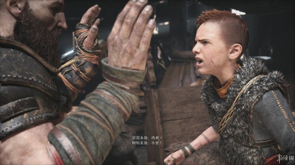 游戏的流程中,不论是攀爬、划船还是解谜,这两父子都会有很多对话,由于阿特柔斯在游戏中的设定中是极为关键的存在,游戏中的不少剧情信息都可以从对话中了解,在划船的过程中奎爷还会给儿子讲述各种寓言故事,不少故事其实都在暗喻奎爷自己从前的经历,而作为儿子的阿特柔斯一脸懵逼地听完后会调侃自己的父亲根本不会讲故事。这种推进剧情的方式温馨、自然而又新颖,唯一的小瑕疵就是字幕的字体有些细小,在一些场景中对话字幕较容易漏掉。