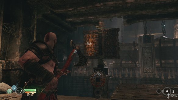 前文中就已提到[利维坦之斧]是本作中解谜的重要工具,游戏中的不少机关都是拉动之后,都需要掷出斧头来定住。除了机关外,游戏中还有种被符文所封印的宝箱,其中藏有提升血量和怒气上限的[伊登的苹果]与[血蜜酒的号角],这类宝箱需要通过找到宝箱四周的3个符文并触碰后才能解锁,一般符文位置都藏得比较隐匿,需要考验玩家的眼力,而有些符文的开启有时间限制需要玩家有较快的反应速度。