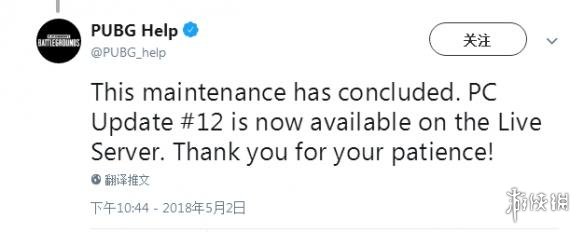 在之前我们已经报道,《绝地求生(PlayerUnknown’s Battlegrounds)》官方在近期公布了游戏正式版上线以来,最大规模的12号更新调整。同时在当时公布之后,相关的更新内容率先上线了游戏的测试服。在进过一周左右的测试之后,此次更新调整在今日上线了游戏的正式服。官方表示,此次更新期间游戏服务器将维护大约四个小时,大约在今天下午两点左右能重新开服,具体开服时间,我们游侠网也将在这篇新闻中做更新提示。