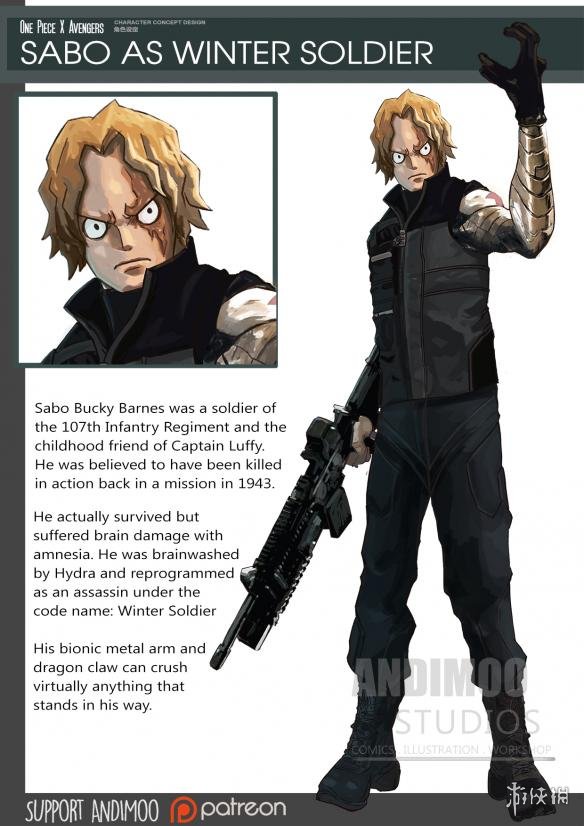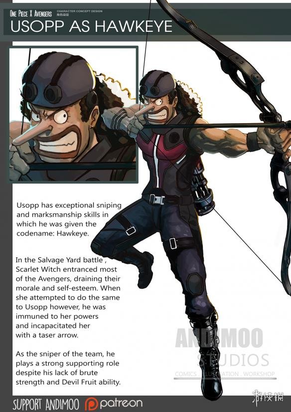 在角色海报中,我们可以看到,路飞成了美国队长,索隆大大化身雷神,而且牙口贼好,拿了三把锤子,真不知道怎么咬的住的?至于其他的如黑寡妇、绿巨人、鹰眼、钢铁侠等都有角色一一对应,一起来看看吧!