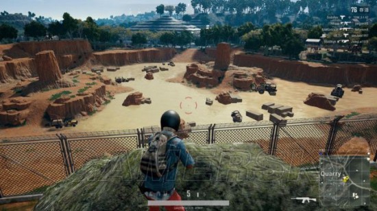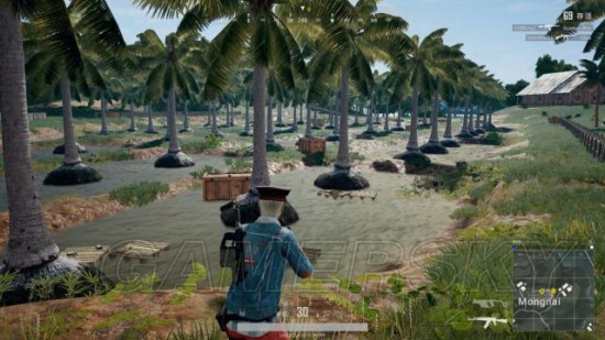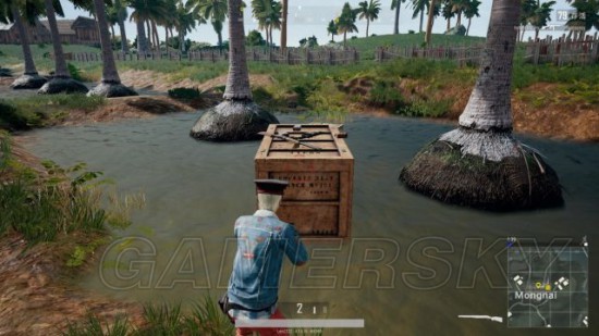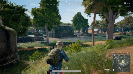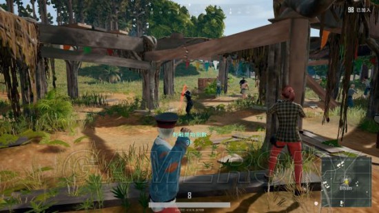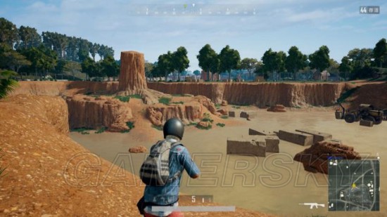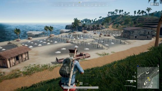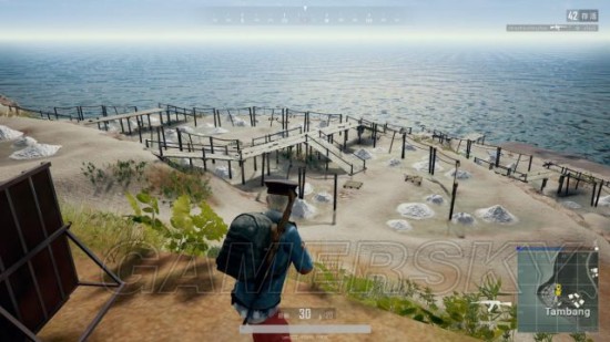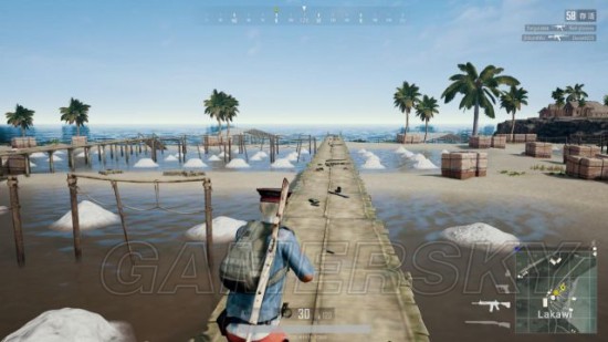 小木桥上有很多物资,晒盐处地势比较低,容易被上面房区的人卡,Luis这里提醒一下,跳晒盐处后,赶紧捡枪,绕到高处的房子后方会比较有优势。