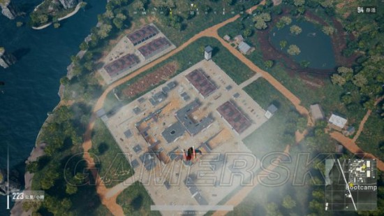 bootcamp热门跳点,类似于学校机场,凸型房子结构复杂,能阴人的地方很多,房顶基本上就是对枪场所,Luis跳了好几次都落地成盒,很危险。