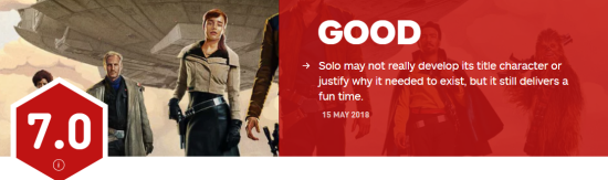 7.《游侠索罗:星战外传》IGN评分7.0