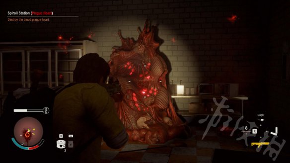Undead Labs显然想过如何优化这些问题,所以我们看到了作为新元素登场的“瘟疫之心”。这种随机散布在地图中的毒瘤会在周边制造出红色的瘟疫丧尸,如果你的角色被瘟疫丧尸攻击,不但会导致生命值上限直接被扣减,更有感染血液瘟疫的风险——这是一种需要耗费珍贵物资才能进行治愈的疾病,否则它会不断蚕食掉患者的生命与理智,使其最终变成丧尸。摧毁瘟疫之心是流程的重要内容,也是社区发展必须面对的。且不必说每一次铲除瘟疫之心时都需要面对大量尸潮的挑战,每当你拔除一个瘟疫之心,下一个都会变得更强。这种设计令游戏始终保持了一定的挑战,也可以看作是玩家与丧尸世界的正面对抗。