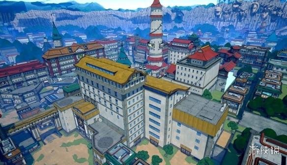 随着时代的进步,木叶村已经发展为高楼林立的现代化“都市”了。白天、傍晚和深夜的景色皆有变化。