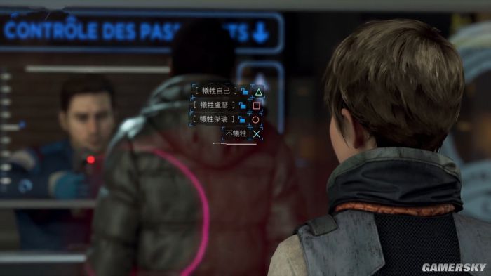 在《底特律》的尾声,卡菈一行人在入境处面对检查,仿生人的身份一旦暴露,三人就将全部毙命,此时玩家有机会选择牺牲一人保全大家的性命,那是个痛苦的选择,理智告诉我,应该选择一个人去牺牲的,这才是“正确”的,或者说“务实”的,但最终笔者没能做出选择,那一刻我放弃了,放弃了理性,也放弃了抵抗……我想,也许就这么一起死掉也不错吧。