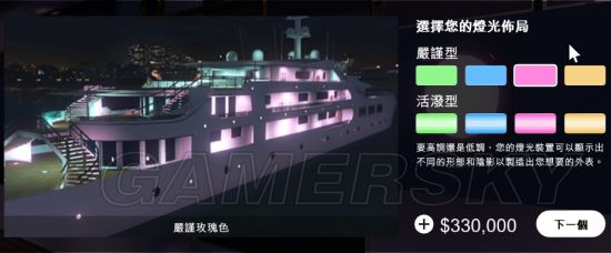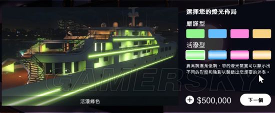 分成两种,严谨和活泼只差在船身上有外侧灯光,平时自己在船上看不到,