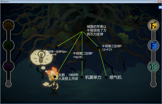 当牛顿被砸到满头灵(da)感(bao)的时候便成功的研究出著名的牛顿定律,并推动了人类科学文明的发展。DDS团队脑洞大开,从题目想到了树,将典故、趣味性以及见证了牛顿发现万有引力完美融合,便组合成这样一个有趣、有创意、又有意义的游戏。