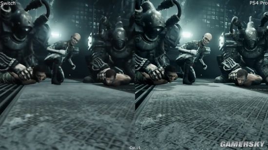近日《德军总部2:新巨人》正式登上了任天堂Switch平台,大家最在乎的一定是游戏的画面会不会“缩水”明显。油管上就有玩家分享了PS4 Pro和NS版本的对比演示,其中PS4 Pro版画面的分辨率为1080p,NS版为720p。