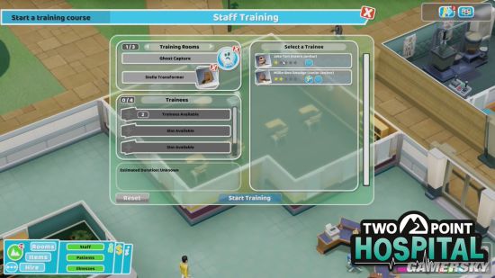 视频中的双点医院看起来正面临着幽灵的困扰。玩家可以亲自设计医院的房间,打造训练室来教育员工,然后想办法培育出抓鬼高手,来解决这些幽灵。
