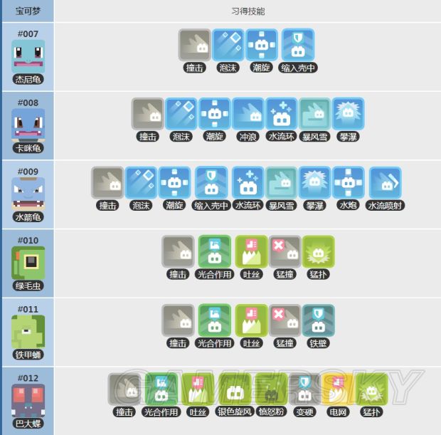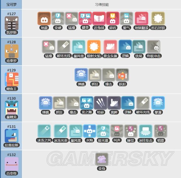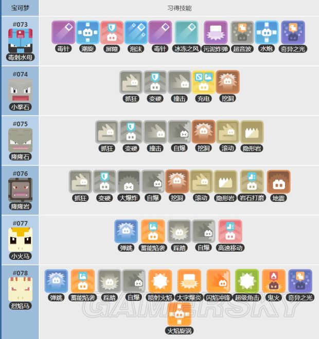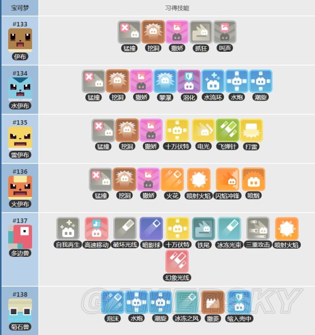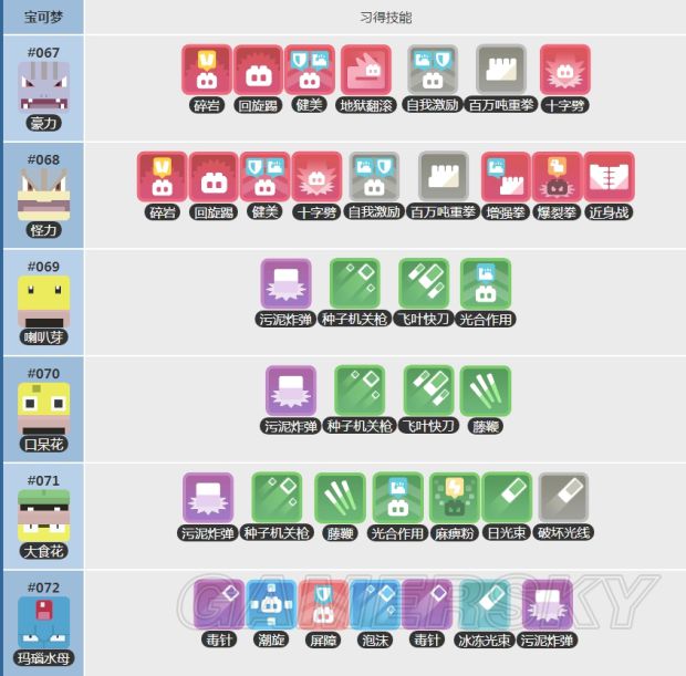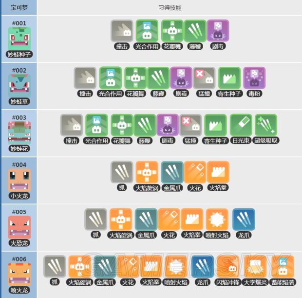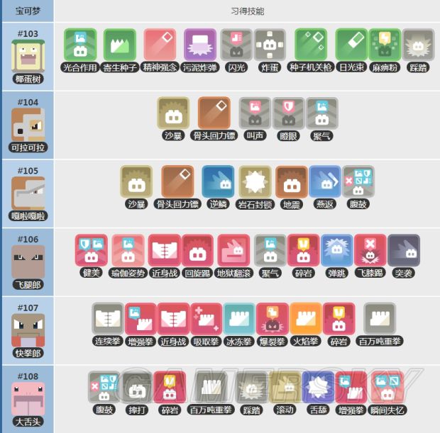 《宝可梦探险寻宝》宝可梦入手的时候随机有1到2个招式,想要改变招式只能通过特训来改变,协助特训的宝可梦将会消失不见。每只宝可梦可习得的招式是固定的,有些招式只有特定的宝可梦才能习得。下面就为大家带来《宝可梦探险寻宝》可习得招式一览表,各位朋友来看看吧!