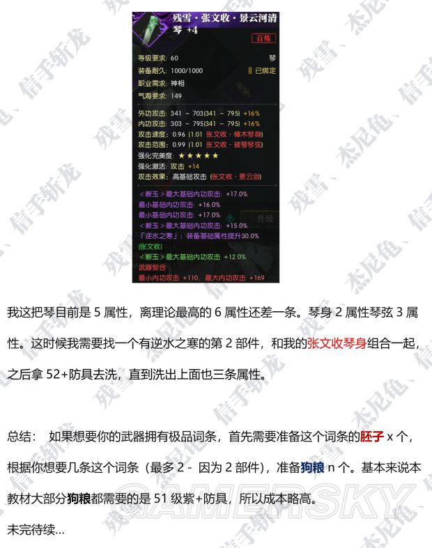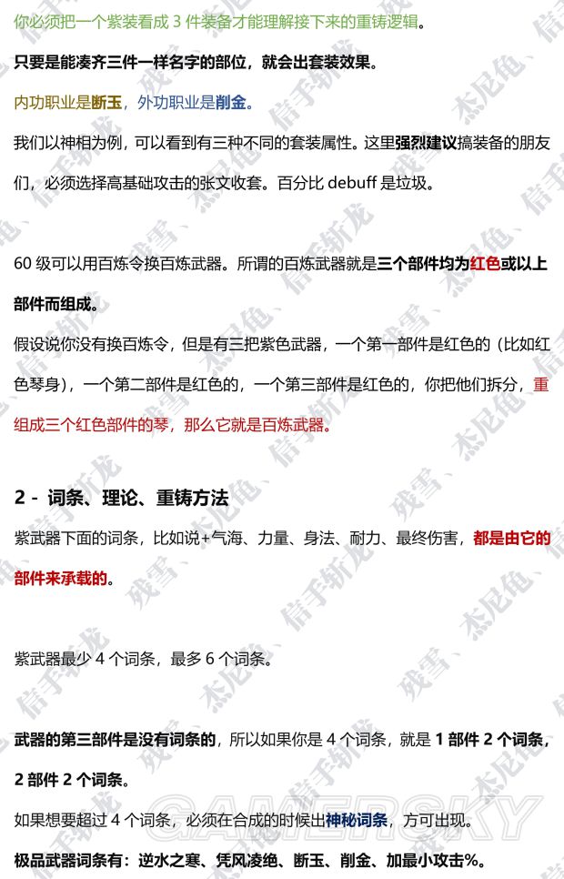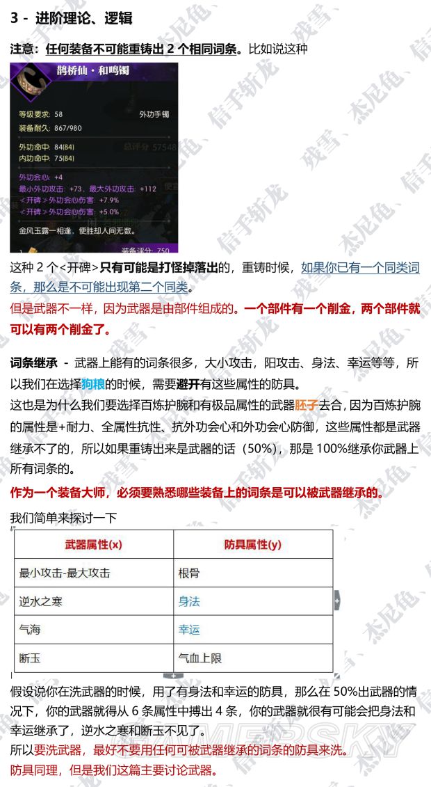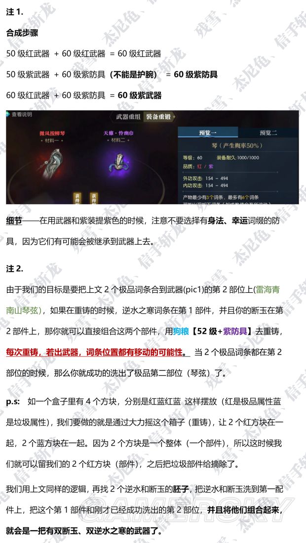 在《逆水寒》中,紫色品质的武器由三个武器部件组成,而武器部件的属性决定了武器的属性。所以武器部件属性的高低决定了武器的最终效果,许多玩家还不知道词条继承的部位,以及如何定向重铸出自己所需要的属性,今天就给大家带来“黄大仙”分享的《逆水寒》断玉、削金等词条定向重铸方法,祝大家做出属于自己的极品武器。