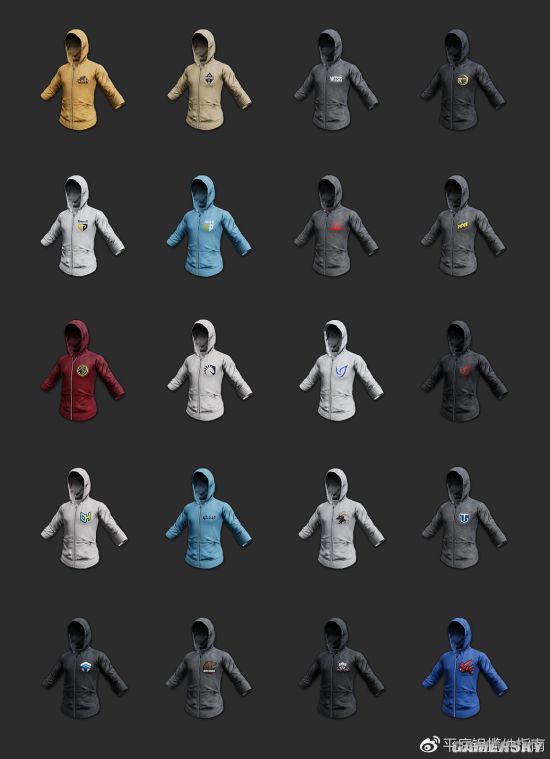 简评:20个PGI参赛战队队标卫衣,应该人手一套。