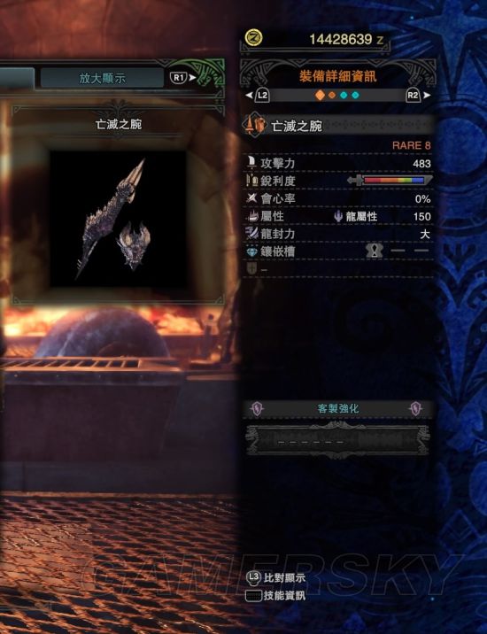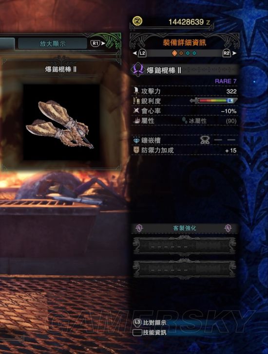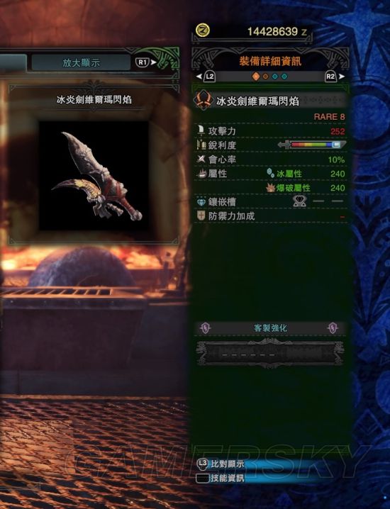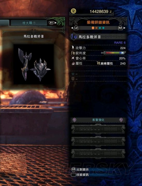 片手虽然也适合打属性,不过由于3.0版本烂辉龙的出现,导致属性武器大部分被烂辉龙的鉴定武器所取代,这里就不分享了,后面双剑同理。