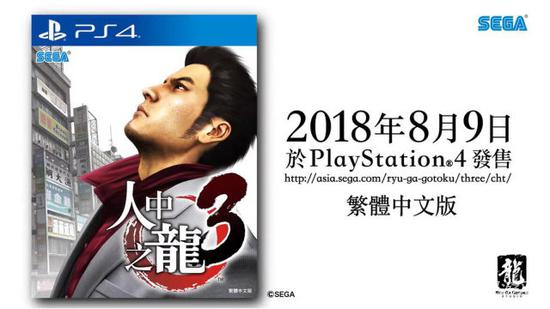 SEGA Games宣布,创下出货数量超过1000万套纪录的“人中之龙”系列最新作品,PS4游戏《人中之龙3》繁体中文版在今天8月9日(四)正式发售。