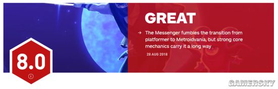 《信使》是一款像素风格的动作游戏,将于8月30日正式发售,不过IGN已对这款游戏进行了测评,并给出了8.0的评分。IGN认为《信使》有很多优点,作为一个2D动作跳台游戏,能够完美的从8bit切换到16bit,有着幽默巧妙的对话和经典复古的BGM。不过在游戏玩到一半时,《信使》的游戏类型从类似《忍者龙剑传》的动作跳台游戏转变成了类银河战士恶魔城游戏,不幸的是这个转变过程略显笨拙,用重复无聊的任务来填充了游戏的后半部分。