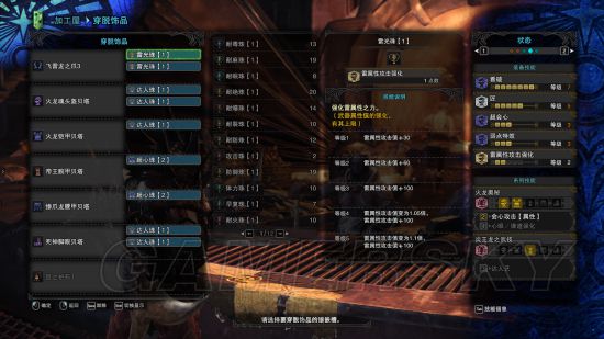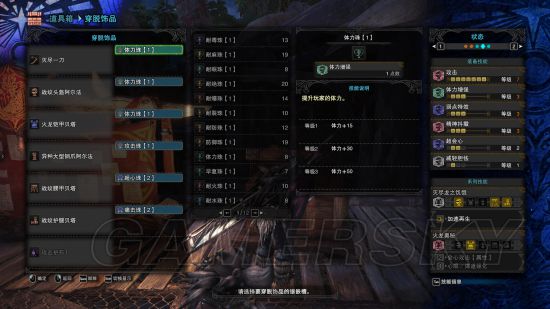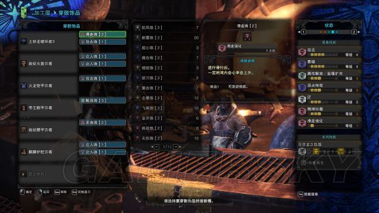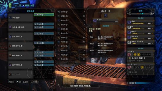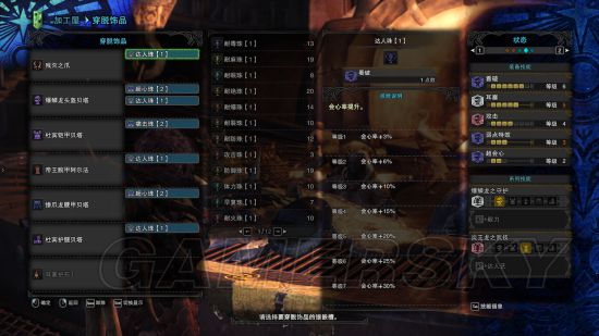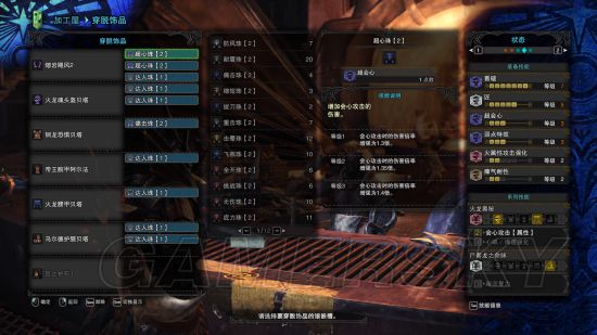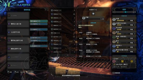 如果说太刀主要吃攻击珠子,那么双刀就主要吃达人珠子了,火龙套的属性会心必备,堆高会心率,堆满武器的属性上限,完美。这套主要拿来打尸套,所以出了耐瘴2,耐瘴这个属性,2基本就够了,很难中那个减少血上限的异常BUFF。