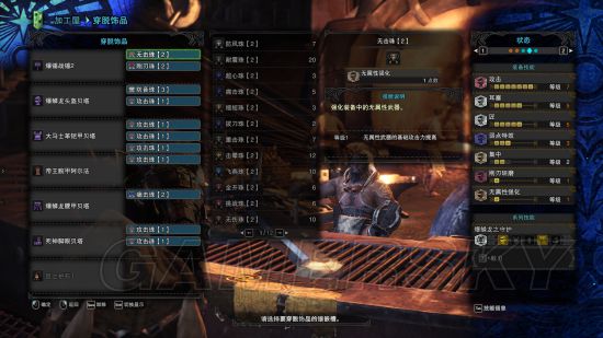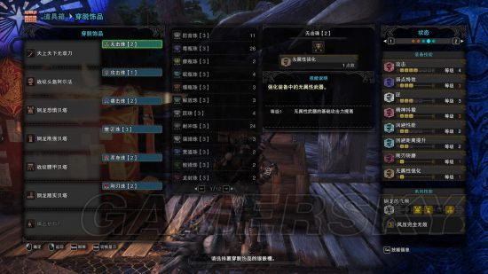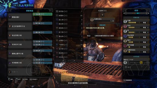 武器克制两次孔,极限输出配装,站仓库面板高达1425,绝对的输出达人,但是没吸血,不能太浪,适合老猎人们单刷用,打的怪物不能自理。