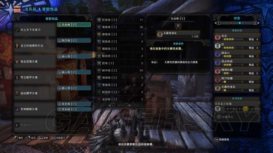 这一套配装也是我在贴吧找的,当年找到这个配装看到这个珠子要求感觉跟***一样,居然要5个攻击珠子。当时我手里只有3个,刚说我要有那么多攻击珠我就去曰狗,结果连着3次历战钢龙出了俩,**我再也不乱发誓了。珠子不够的可以把3个攻击换成体力什么的增加生存能力,灭尽大剑输出虽然不是最高的,但是蓄力特效是真好看