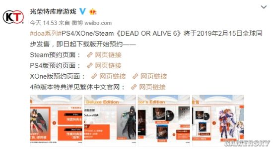 今日,光荣特库摩宣布《死或生6》数字下载版开启预约,并公布了游戏的预购奖励,以及不同版本游戏的特典内容。游戏中文官网>>>>