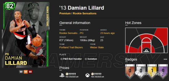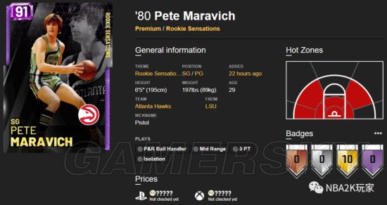 拉里伯德,这张卡的属性总值为3549,目前在红宝石球员卡中排在第三位,属性数据分为两项绿区和四项黄区。伯德进攻端自然是偏向投射了,这张卡几乎所有投射小项属性都在85以上,投篮热区也分布的非常广,玩家们可以拿着这张卡去骚气飘投了。内线得分能力稍弱,上篮可用,但基本告别扣篮。