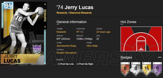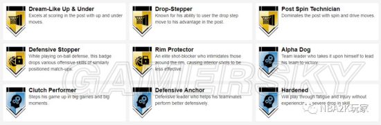 这张卡的徽章给了不少,共计15枚金徽章,有接球投篮、底角三分、中距离等投射徽章;有梦幻舞步、补篮之王等内线进攻徽章;也有护框精英、精英篮板手等防守徽章,覆盖面还是比较广的。