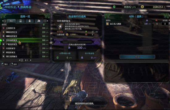 炼金在解锁之后分为道具炼金 图2 3,炼制道具以及部分素材,道具一般需要矿石之类的怪物素材,而炼怨念物宝玉的时候需要金之龙人票,可以通过做周长任务给一张,或者做梦幻之鸟和化石鱼的任务个给一个。这俩任务需要前置任务触发并且只能完成 一次。