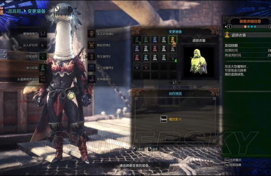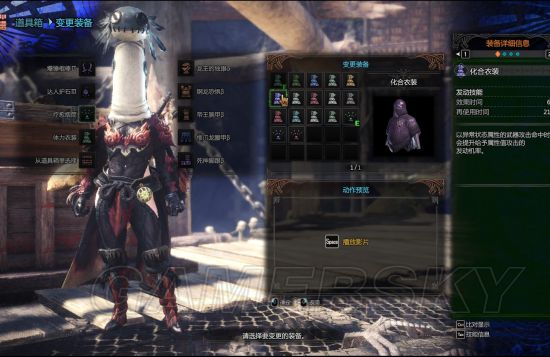 第三个化合衣 图3化合衣持续60秒用来打异常状态的,感觉辅助用的多点?当你手持异常状态毒眠麻的时候使用化合衣能加快怪物的异常状态触发,爆破的话没必要穿。