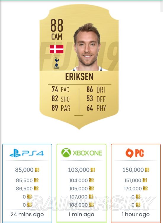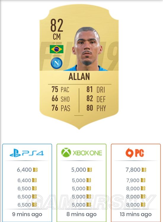 18开荒神卡,19这代丝毫没有弱化,不知疲倦的奔跑,每球必争的倔性,这就是银狐国王瓦尔迪!H/H心态,33脚,没有太多的花式,但是总是能跑出机会,身体对抗也不会吃亏,持久是他的代名词。可以搭配LW拉师傅RW斯特林组成完美绿线,中场可以混搭其他联赛。PC顶价2W。