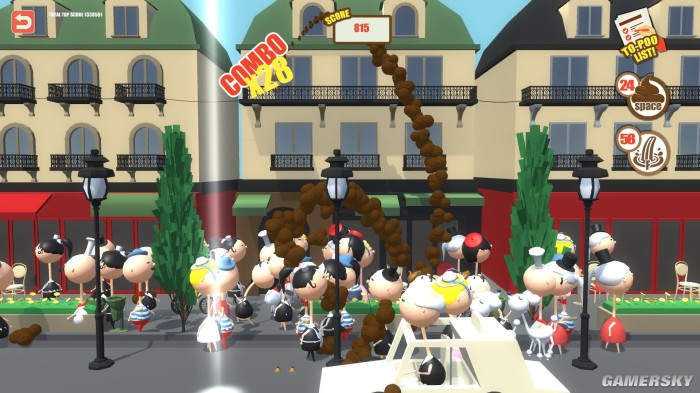 如果你是一个精准的射击高手,能够将屎扔到小孩手中的甜筒/路人的食物中,还能够解锁很多新的成就达成更高的分数和新的拉屎技能。