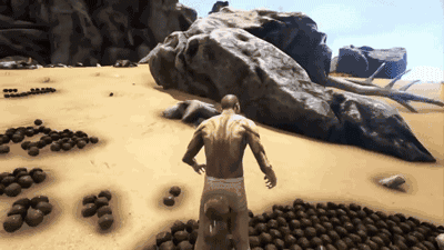 “屎味”最为突出的要数《方舟》。这里先说一个前置条件:在《方舟》里,玩家只有死亡后才能随机重生,否则即使角色下线上线,也只会在同一处地方出现。