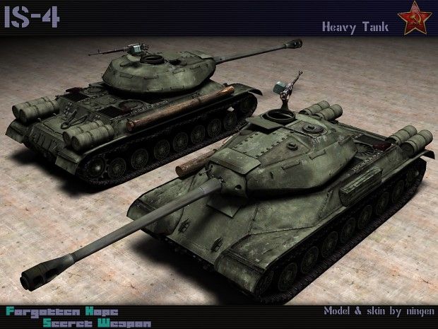 IS-3和IS-4都是苏联在二战末期开发的重型坦克,正面和侧面都采用了倾斜装甲设计,并且安装了一门大威力加农炮作为主要武器,如果战争持续到1946年,它们将成为痛击“虎王”坦克的重要武器