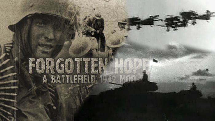 在《战地1942》的各种mod中,集大成者是“Forgotten Hope”。该mod的最早版本推出于2003年,即《秘密武器》上市时。其团队的核心是欧洲和美国的热心玩家。除了纠正原版游戏的不足外,这个团队一开始就定下了两个目标:首先,他们希望在《战地1942》中呈现更真实的二战,让那些硬核军事爱好者如愿以偿;另外,他们还希望把mod打造成一个包罗万象的平台——届时,任何一种二战武器和载具都将在这款mod里找到。