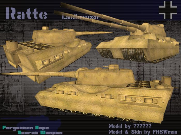 二战德国的P-1000超级坦克,历史上只有图纸和模型,在FHSW中,该武器在一张沙漠地图登场,玩家无法通过传统手段摧毁它,只能跳伞进入内部,用炸弹摧毁坦克的弹药库