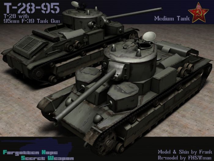 T-35和T-28多炮塔坦克,1930年代苏联军事力量的象征,这里展示的T-28是加装95毫米炮的试验型号,在二战前只生产了一辆