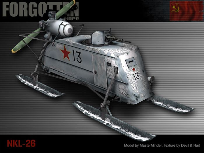 NKL-26雪地动力滑橇,专门为冬季战生产的快速交通工具,其背后的发动机可以带动螺旋桨,推动整个滑橇前进