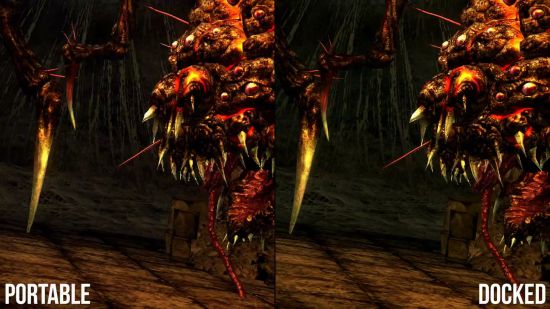而在手持模式下,游戏的运行也更加稳定,虽然相比于电视模式在画质上有所牺牲,然而游戏能够以1280x720分辨率稳定运行,仍然要比上世代原版的运行分辨率更高。同时,原版游戏在病村中的大幅掉帧情况也没有在NS上出现,后者能够全程稳定30帧运行。