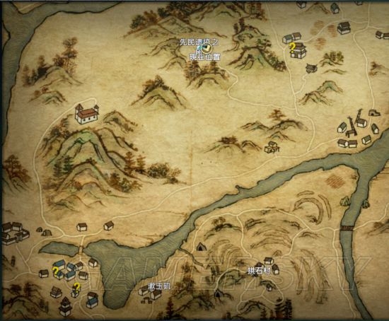 首先在晚上来到这个位置,地图上标记为“先民遗迹之所”。