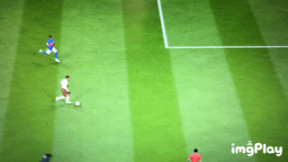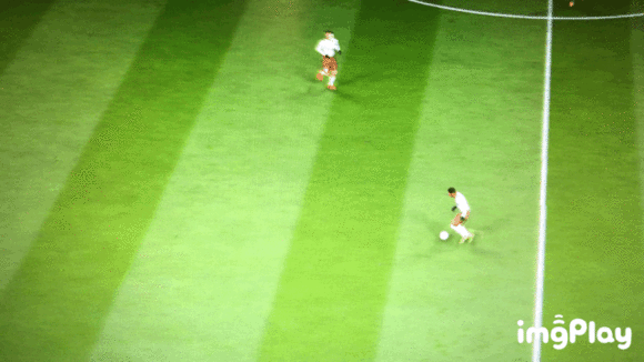 上图是,我用内马尔完成的一次圆规过人,角度大概在180°,这个动作可以迅速调整身位,而且具有欺骗性,并且可以黏住球,再来一个例子。
