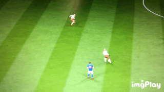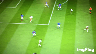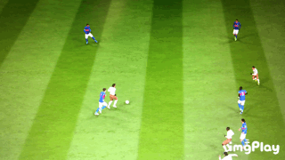 然而这个动作固然好用,却不适合用于禁区突破,因为他位移太大,位移时又不能控制变向,很容易被禁区人墙挡下来,比如下个例子。