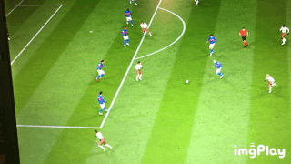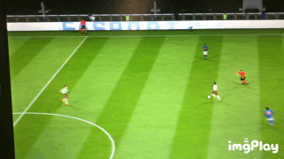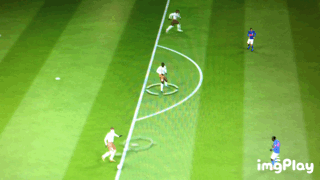 上图中我的克雷斯波接到传球后,处于静止不动的位置,这个时候,我使用圆规过人,可以将面朝自己球门,瞬间转换成面朝对方球门。