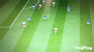 上图是我用内马尔使用了一次踩单车,并且迅速将左摇杆往右侧空挡区域拨动,内马尔在吸引了对手的注意力后,迅速的变相,完成了一次过人。