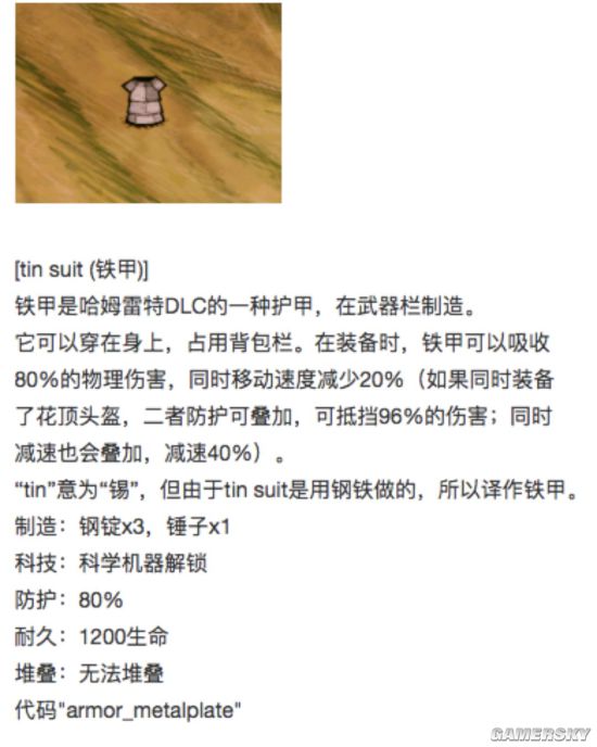 蚂蚁甲是哈姆雷特DLC的一种护甲,在武器栏制造。