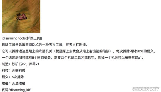 考古锤是哈姆雷特DLC的一种考古工具,在考古栏制造。
