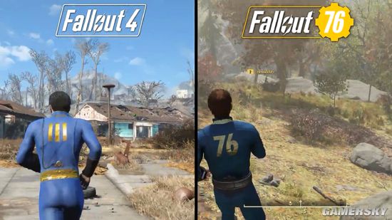 B社的《辐射76》采用了与《辐射4》相同的Creation游戏引擎,虽然官方宣称引擎进行了许多升级,但经过之前的测试有不少玩家反映《辐射76》的画面表现与《辐射4》实际上相差并不大。油管频道Nick930就带来了一段视频,将两者的游戏场景和人物建模进行了对比。