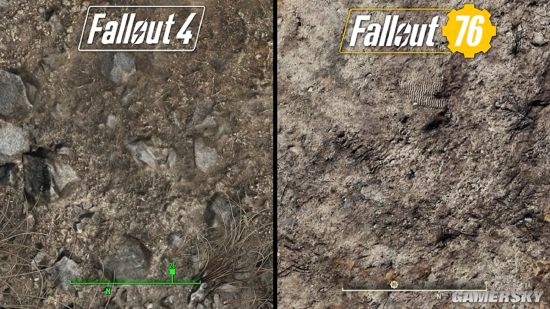 即便用“优酷画质”对比也不难看出,《辐射76》的画面表现相比《辐射4》进步并不大,甚至在某些物体细节方面还有少许退步,而更多地方两者像是一个继承的关系,表现几乎相同。虽然B社表示他们为了制作《辐射76》将引擎进行了升级,但很有可能升级更多的地方只是为了适应多人游戏的要求。借用某位玩家的比喻,《辐射76》之于《辐射4》就如同《GTAOL》之于《GTA5》一般。