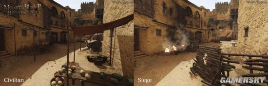这种方法不仅可以帮助我们创建沉浸感和通过删除战斗场景不需要的元素来减轻性能负担,也为我们的设计提供了更大的灵活性。我们可以拦住与攻城战无关的道路,以减少过度复杂或关闭近道,来平衡双方的不必要的优势,并避免一些看起来不合适的地方。