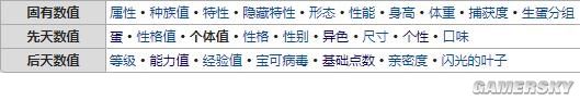 这其中:固有数值都是变动不了的,后天数值可以在培育的时候随意更改配置,剩下的就是我们需要“刷”出来的先天数值。
